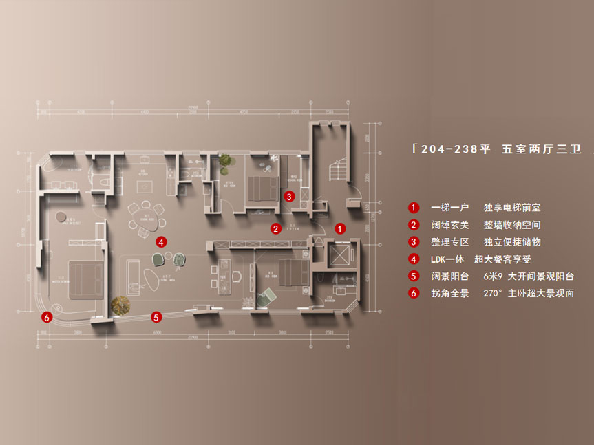 新百胜集团郡府项目享有半山宅邸自然条件,景观优势突出。北临龙山隧道,西临大连民族大学科技工业园,打造高端纯洋房社区。在设计上接纳高尚贞洁的“贵族白”色调,搭配修建设计及全景玻璃,实现高标准窗地比,展现出通透流通的线条肌理。项目定位为现代豪宅,仅有46席面积在 204-238㎡之间的产品,一梯一户的设计,最洪流平包管客户的私密居家体验。